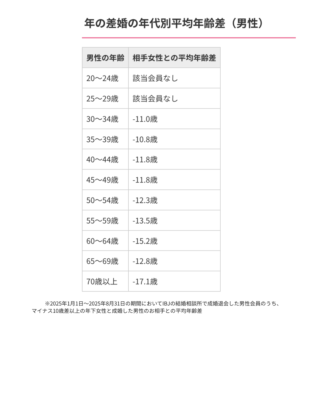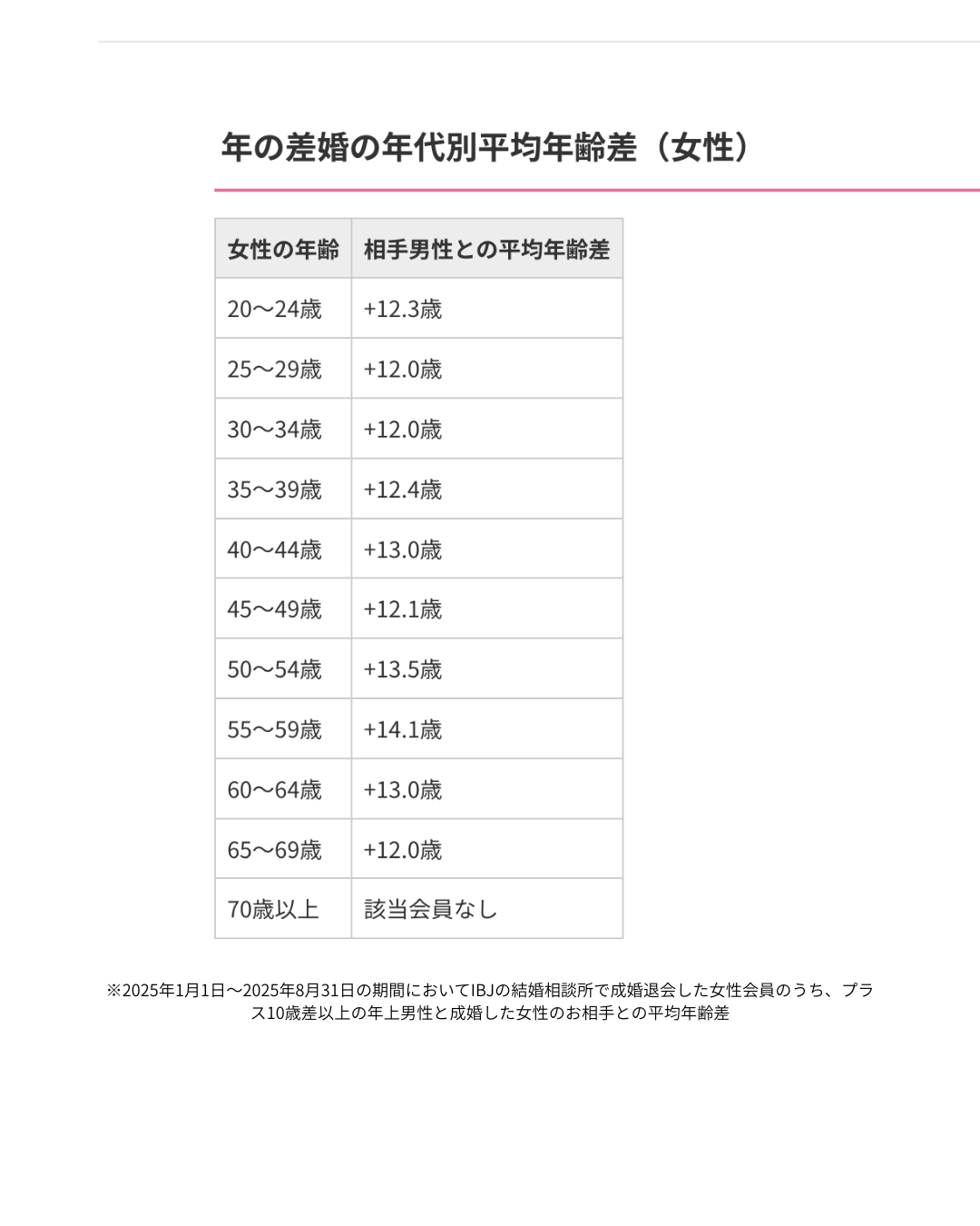 2025年1月1日~8月31日の間にIBJの結婚相談所で成婚した10歳差以上のカップルを見ると、